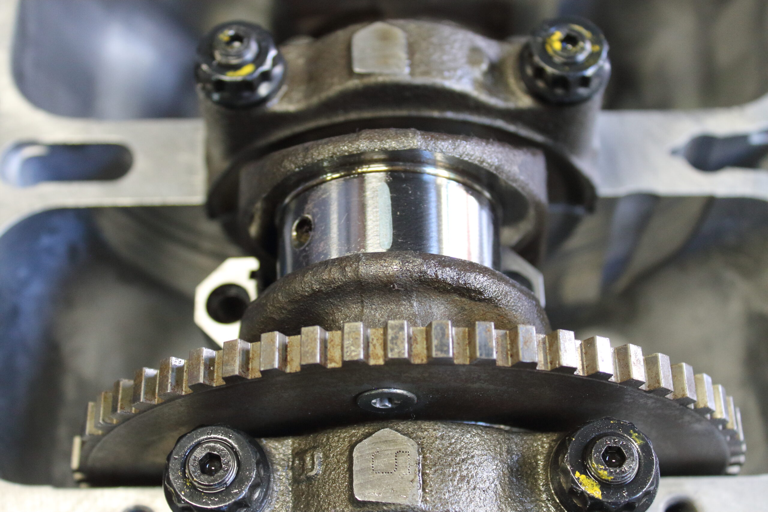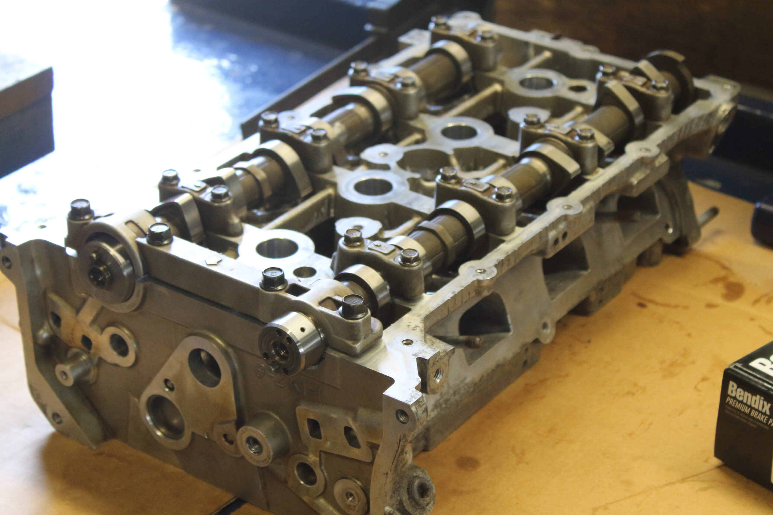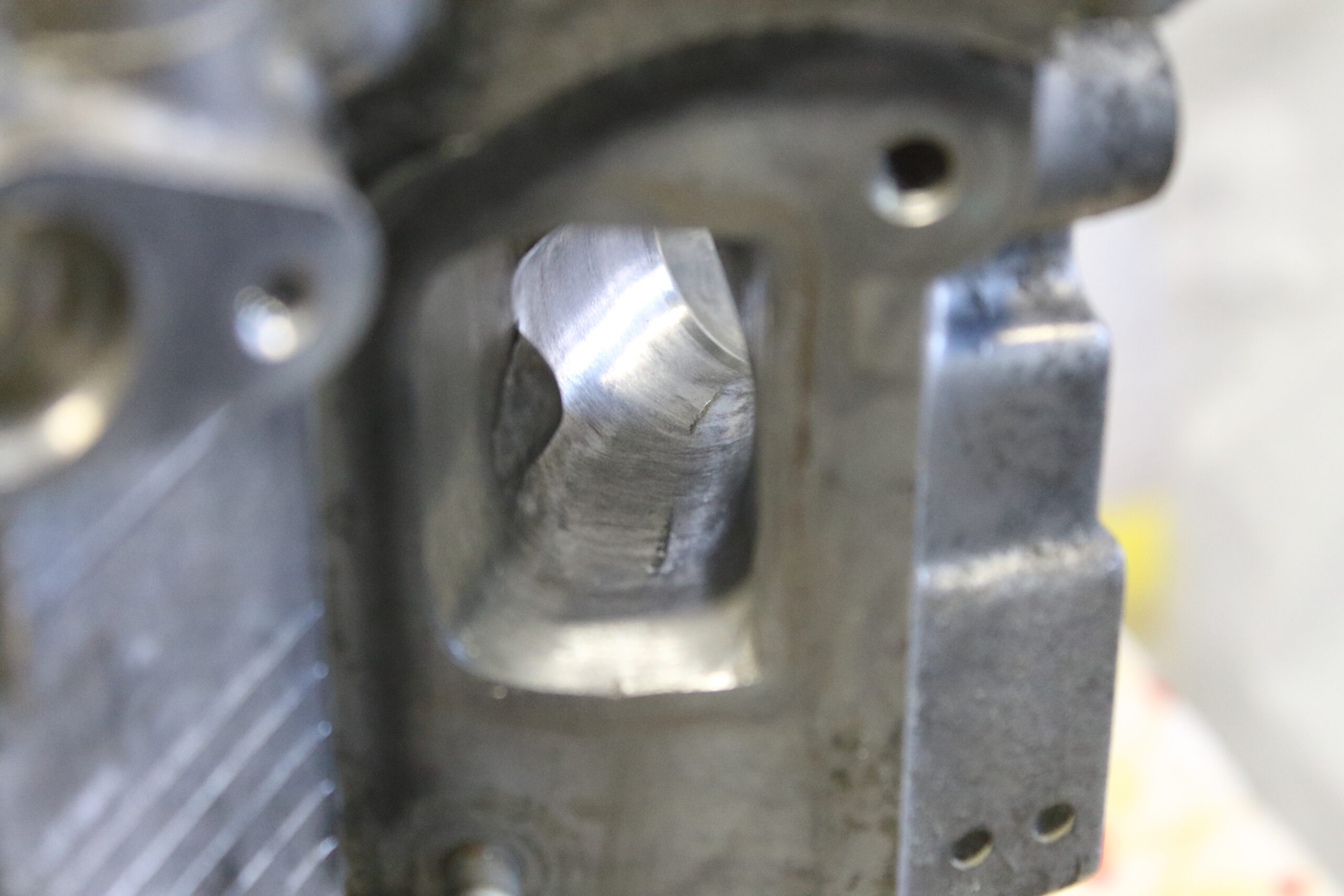 Up top, the head got a full port job and a complete Brian Crower valvetrain upgrade including valves, springs, and retainers. . We also spent time smoothing out the oil drain paths inside the cylinder head for better oil return flow to the oil pan and we cleaned up all the rough casting edges on the engine block as well. Finally reassembled with all new timing components and seals, this engine is built to make the power our client demands!