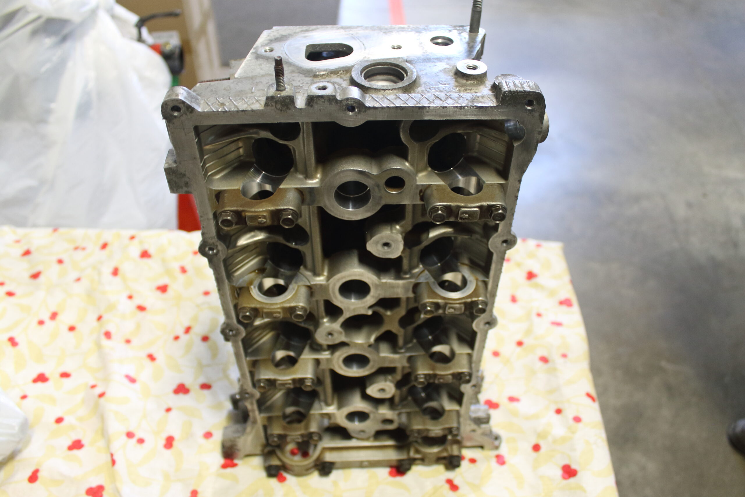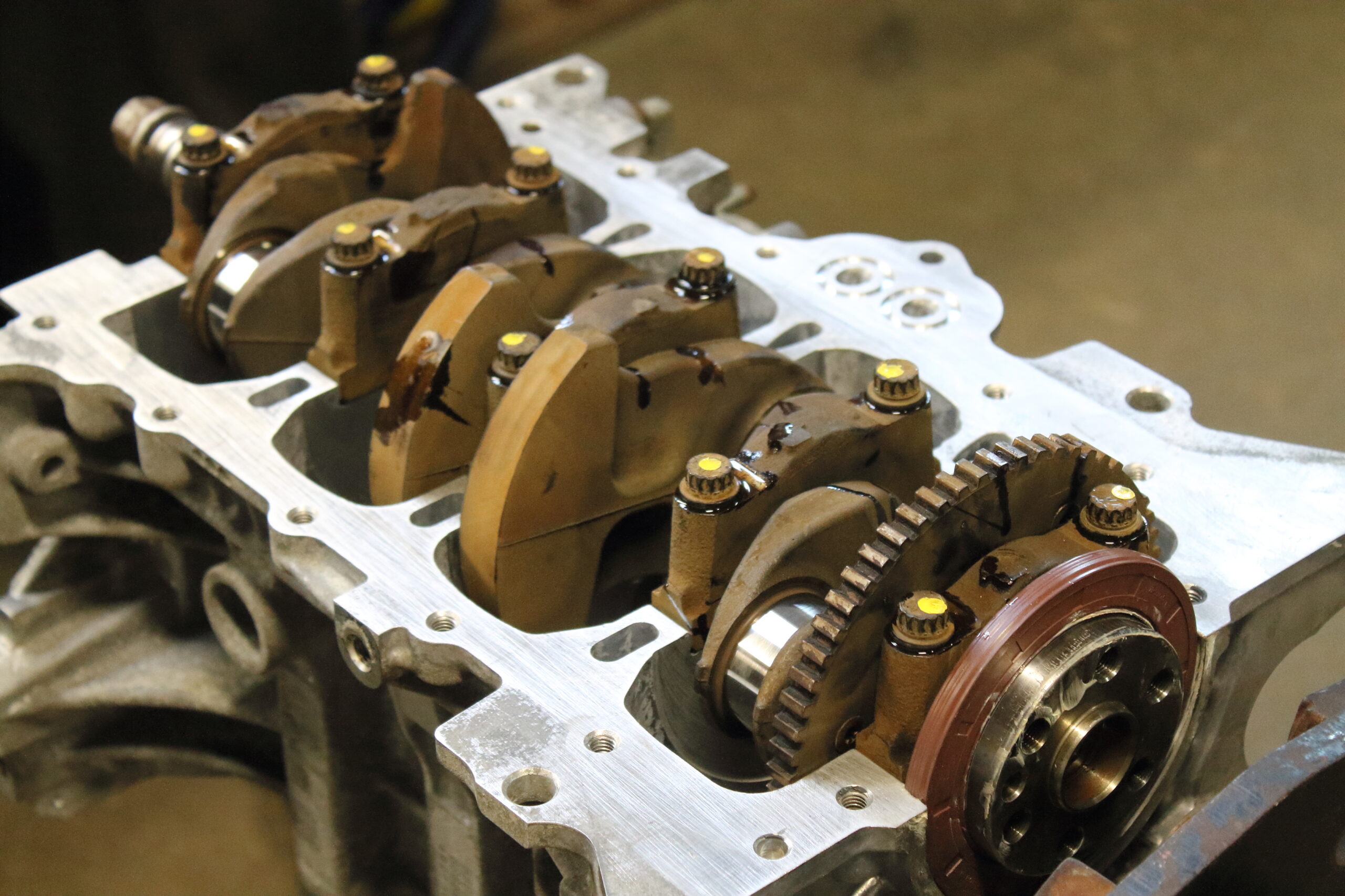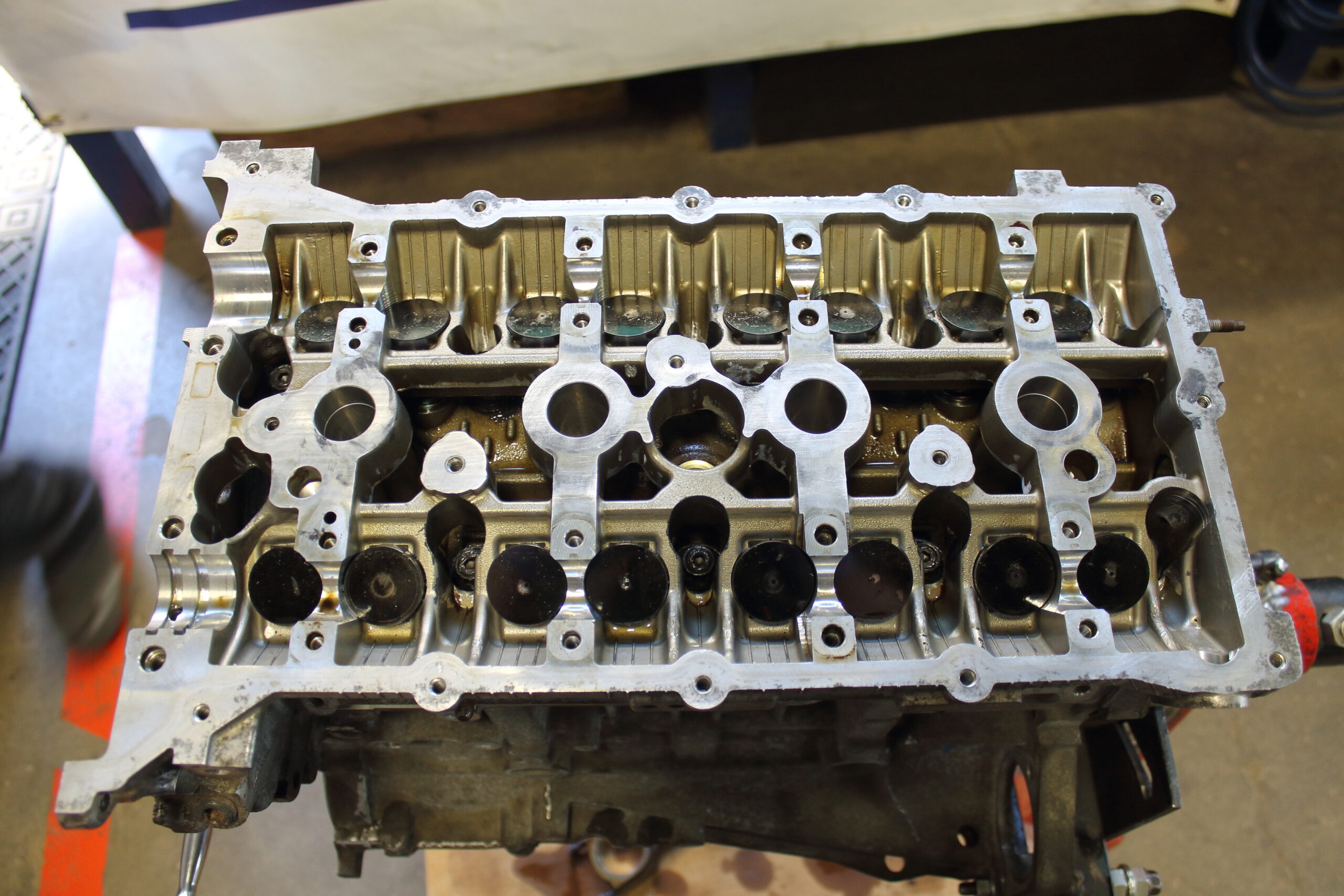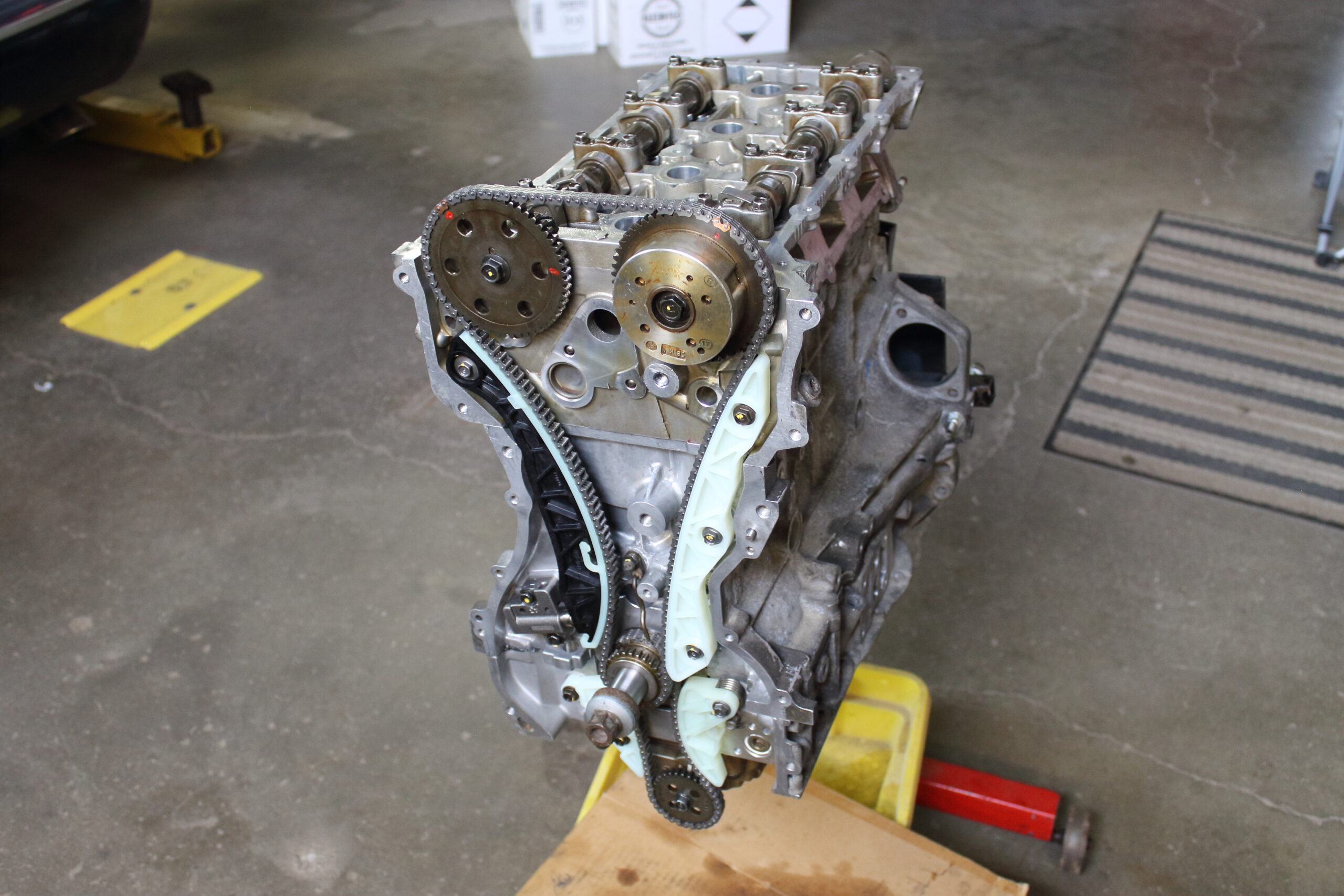 Up top, the head got a full port job and a complete Brian Crower valvetrain upgrade including valves, springs, and retainers. . We also spent time smoothing out the oil drain paths inside the cylinder head for better oil return flow to the oil pan and we cleaned up all the rough casting edges on the engine block as well. Finally reassembled with all new timing components and seals, this engine is built to make the power our client demands!