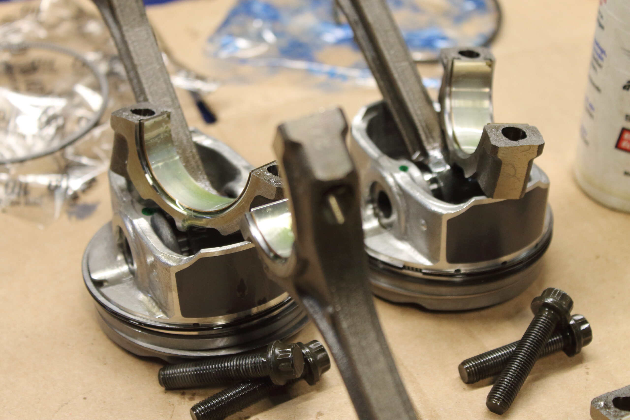We continued to fully fortify the block with a set of Darton wet-sleeves which were pressed in and then honed with a torque plate after our ARP head stud install in order to simulate the cylinder bore distortion under clamping forces. Then we had the crank journals and caps align honed to confirm absolute trueness under clamping force and distortion of the caps from the ARP studs. The remainder of the bottom end was fitted with Wiesco pistons, and Brian Crower connecting rods riding on King Racing Series bearings with some precise oil tolerances to keeping the rotating assembly spinning smoothly!